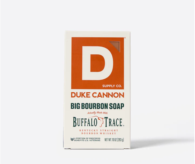In the early days of the American Frontier, rugged pioneers indulged at the end of a long day with a dry buffalo steak and a pull of whiskey, not a $12 appletini and plate of bruschetta. Duke Cannon honors that can-do spirit by partnering with Buffalo Trace® Distillery to add their award-winning Kentucky Straight Bourbon Whiskey to this Big American Bourbon Soap.