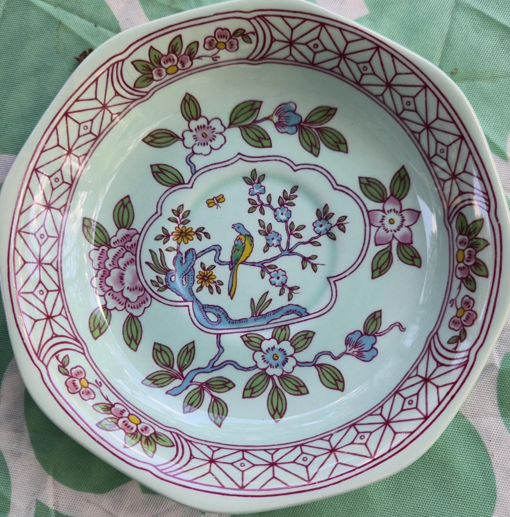 These uniquely fabulous vintage china pierced earrings were created from a gorgeous saucer by Adams Calyx Ware in their "Singapore Bird" pattern featuring a colorful bird on a branch, intricate lattice border, and floral motifs all on a robin's egg blue background that was produced between 1940 and 1984 as part of Adams's popular Calyx Ware (Ironstone) line. Wedgwood continued to produce the pattern after acquiring Adams in 1966, until production ceased in 1984. For this gorgeous ring I was able to capture gorgeous flowers for you to enjoy!