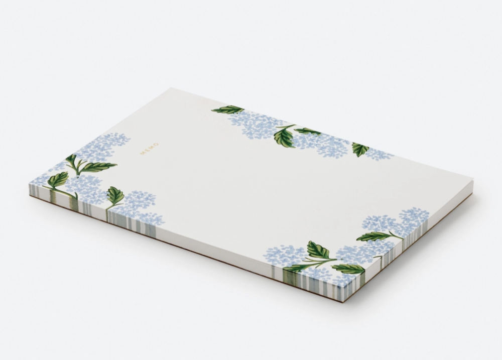 Graceful, blooming hydrangeas decorate this oversized notepad, which features 65 tear-off sheets and gold foil on every page.