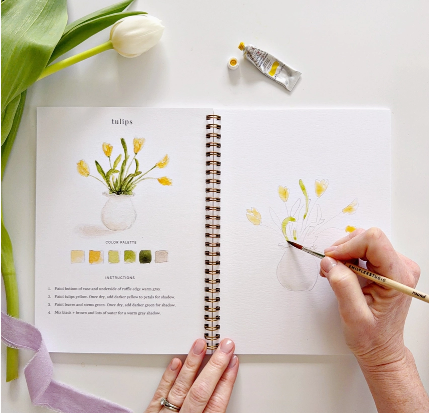 The Spring Watercolor Workbook provides just the right amount of instructions and relaxing fun to pick up a paintbrush to start watercoloring your favorite garden items today.